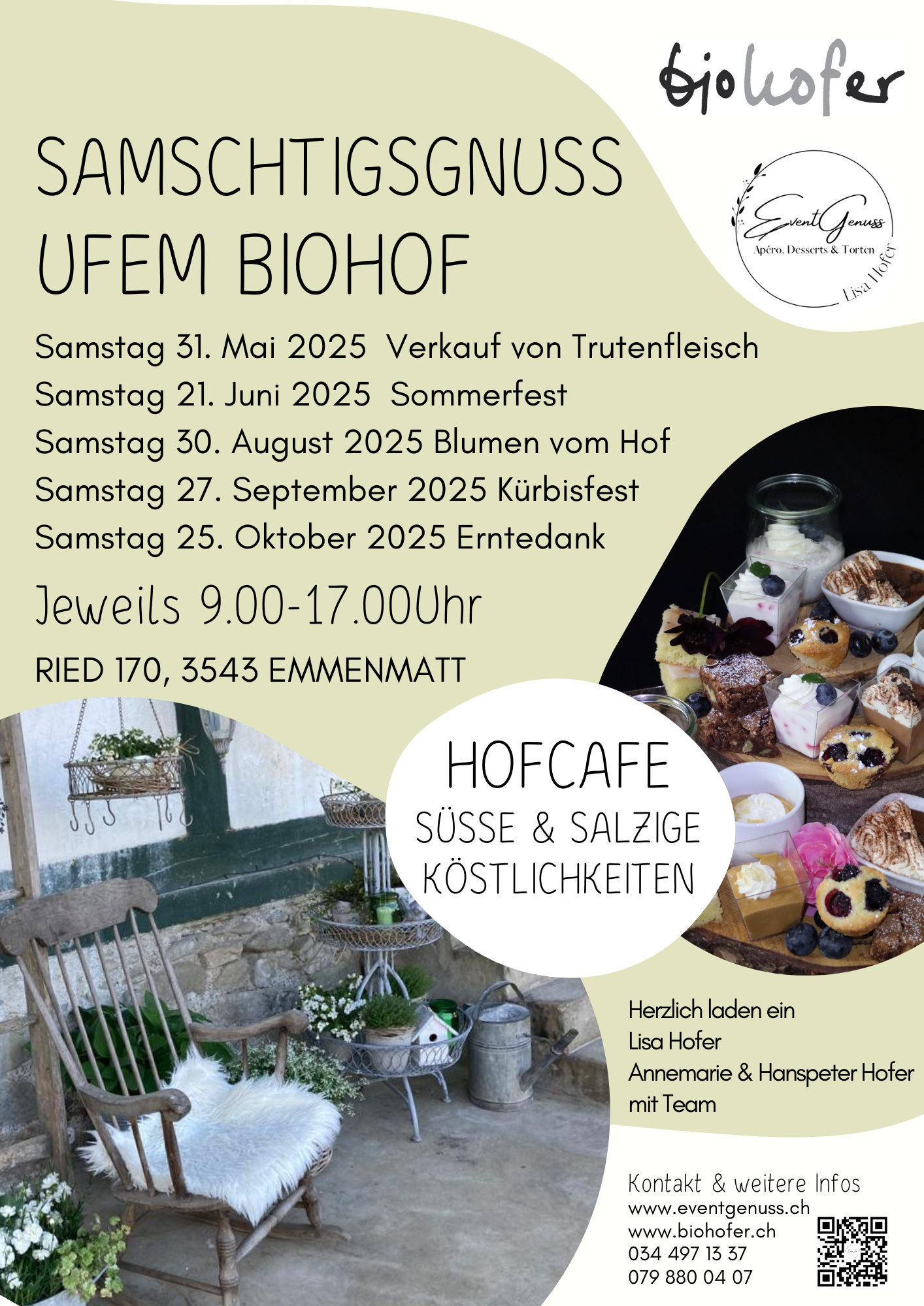 Annemarie und Hanspeter Hofer, Ried, 3543 Emmenmatt, Telefon 034 497 13 37, info@biohofer.ch